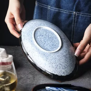 11 Inch Japanese Ceramic Fish Dish – Oval Ripple Porcelain Plate