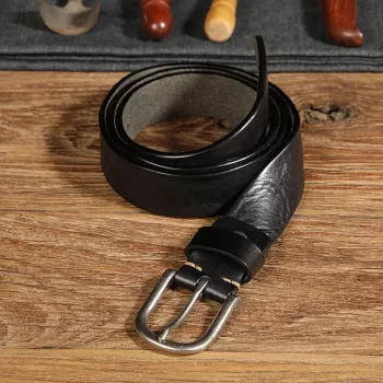 Men’s Retro Leather Belt with Alloy Horseshoe Buckle – Durable & Stylish
